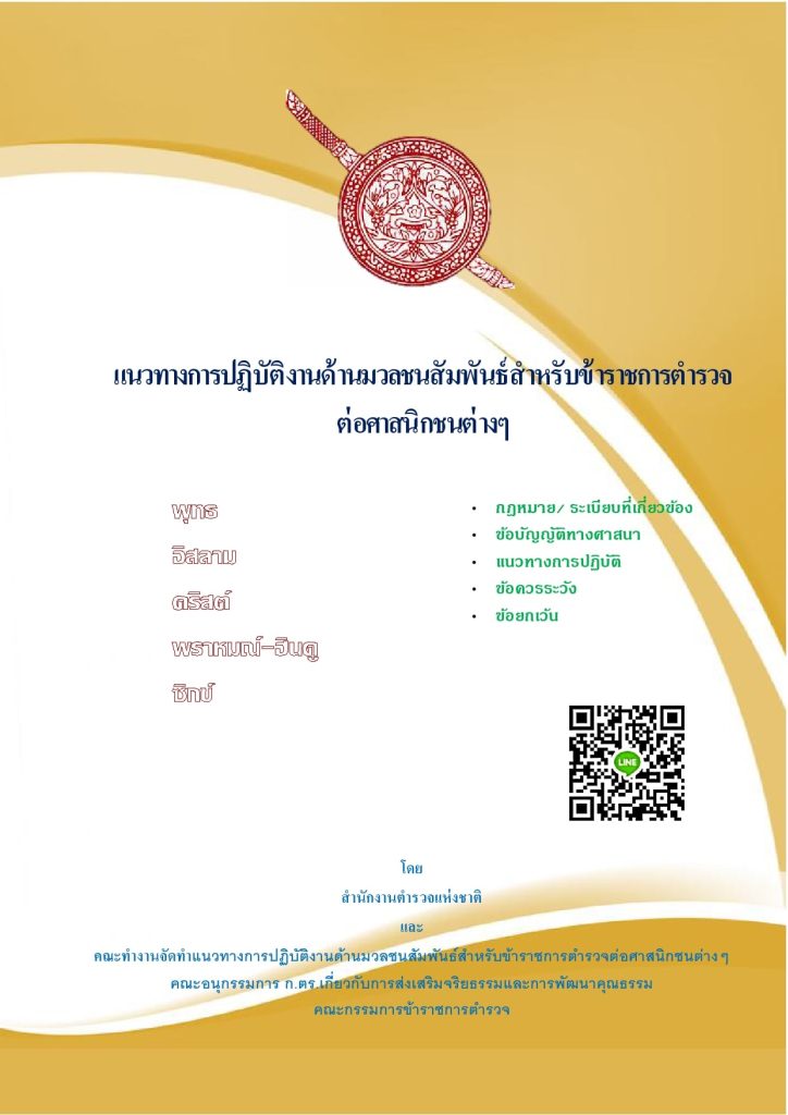 แนวทางการปฏิบัติงานด้านมวลชนสัมพันธ์สำหรับข้าราชการตำรวจต่อศาสนิกชนต่างๆ 1 ตุลาคม 2567 โดย admin / ข่าวประชาสัมพันธ์,ข่าวประชาสัมพันธ์,ข่าวฝากประชาสัมพันธ์ >>> ดาวน์โหลด FacebookFacebookXTwitterLINELine