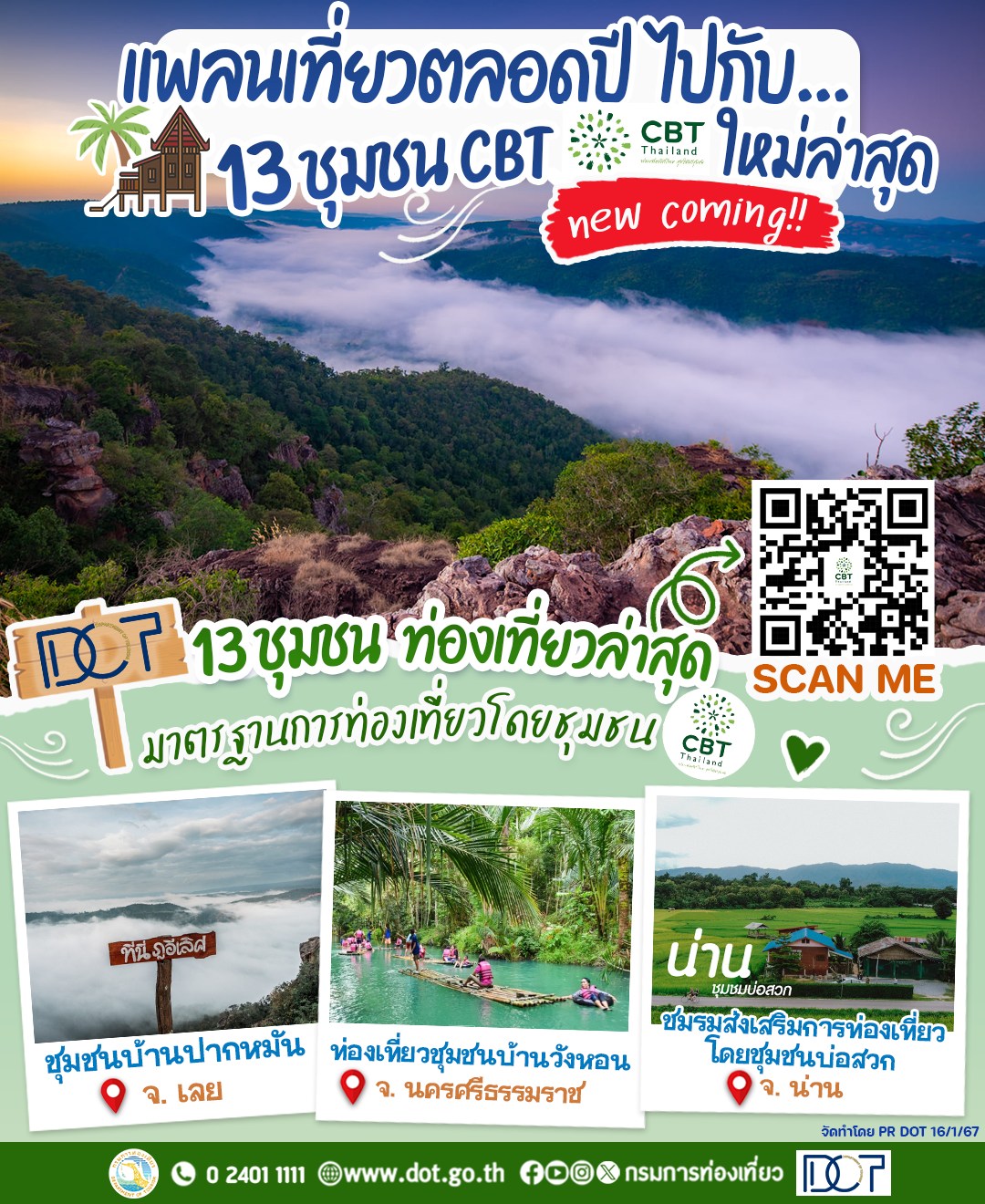 ปี 67 ชวนเช็คอิน CBT แห่งใหม่ กรมการท่องเที่ยวชวนแพลนทริปตลอดปี กับ 13 CBT ใหม่ล่าสุด ที่ได้รับมาตร