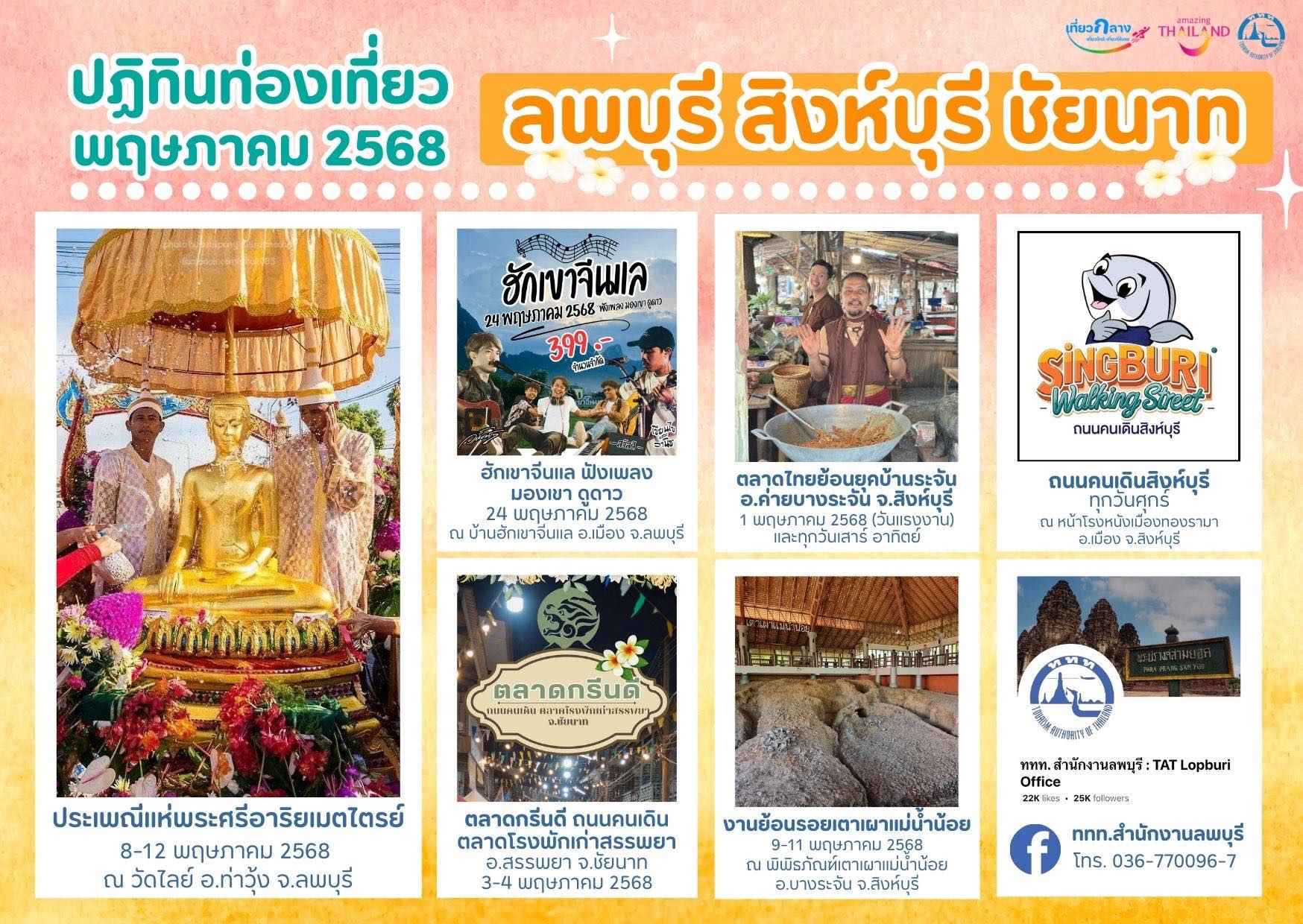ททท.สำนักงานลพบุรี ปักหมุดปฏิทินท่องเที่ยว “ลพบุรี สิงห์บุรี ชัยนาท” ประจำเดือนพฤษภาคม 2568..สุขทันท