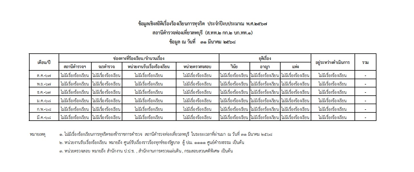 ข้อมูลสถิติเรื่องร้องเรียนการทุจริตประจำปี 2568 (ต.ค.67-มี.ค.68)