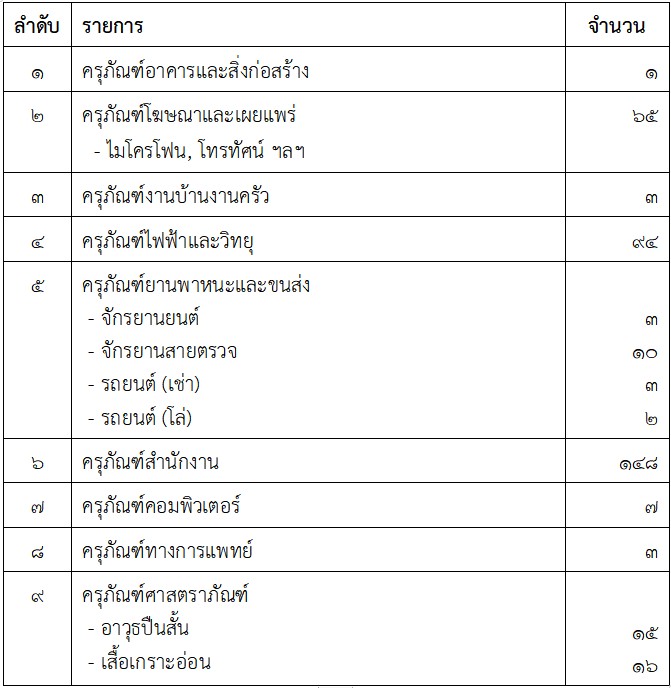 2. ประเภททรัพย์สินของสถานีตำรวจท่องเที่ยวลพบุรี